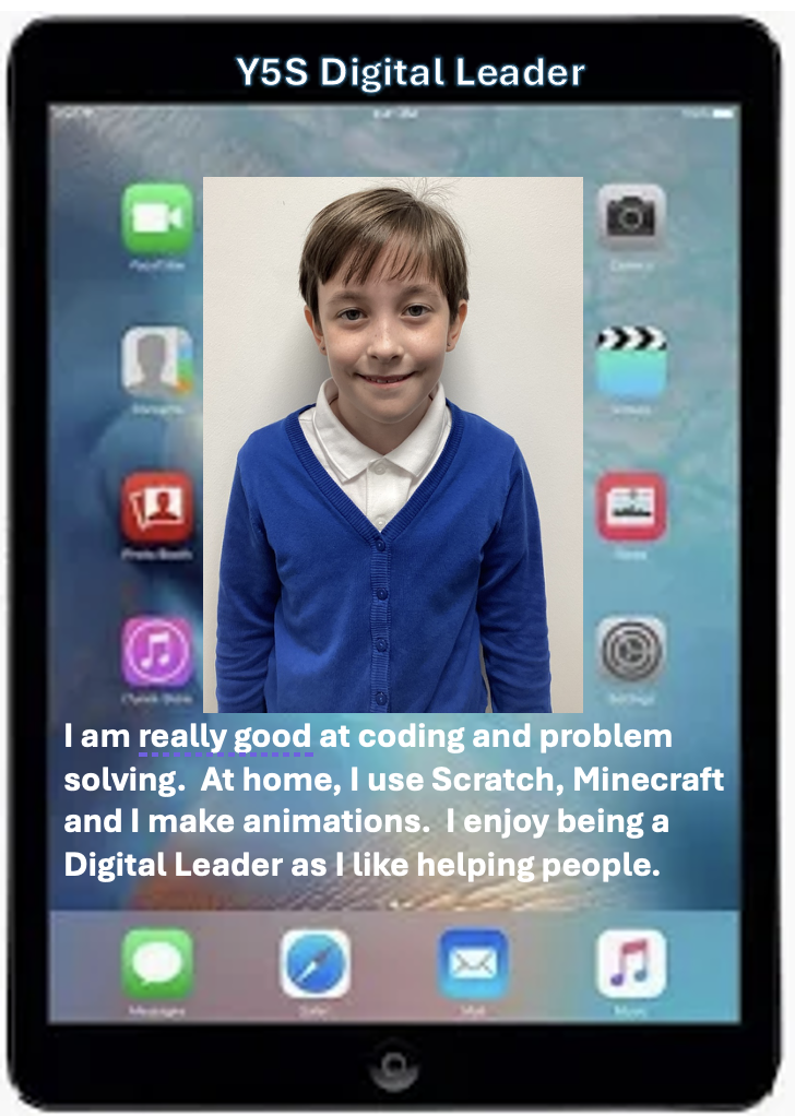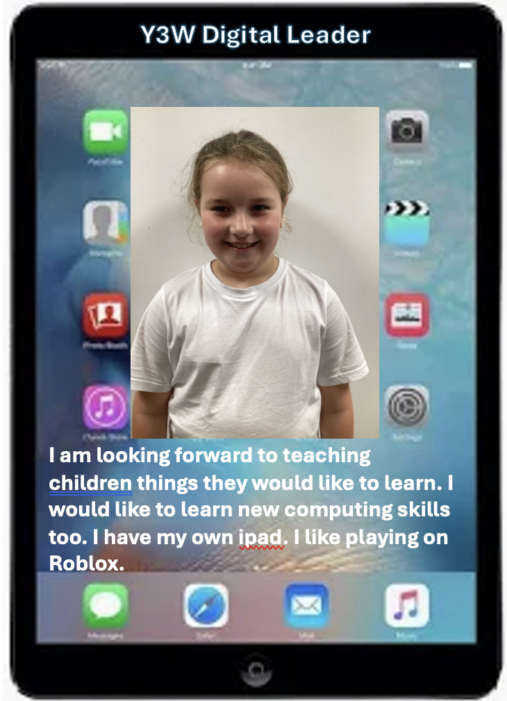 At our school, we are proud to have a team of Digital Leaders, with two representatives from each class in Years 3, 4, 5, and 6. These pupils meet every Wednesday lunchtime with Mrs Woodley to develop their digital skills and make a positive impact across the school.