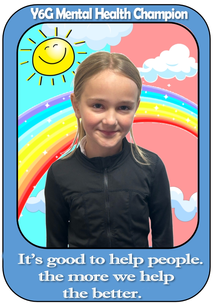 Our Whinstone Mental Health Champions are a caring and responsible group of pupils who work together to help make the school a calm, supportive, and welcoming place for everyone. Trained to recognise the importance of wellbeing, they promote kindness, inclusion, and positive relationships across the school. They help organise activities that encourage children to talk about their feelings, look after one another, and develop healthy ways to cope with challenges. Whether they’re leading mindful moments, checking in on classmates, or helping create peaceful spaces on the playground, the Mental Health Champions play a vital role in ensuring that every pupil feels valued, listened to, and safe. Their thoughtful presence helps build a school community where wellbeing is prioritised and everyone can thrive.